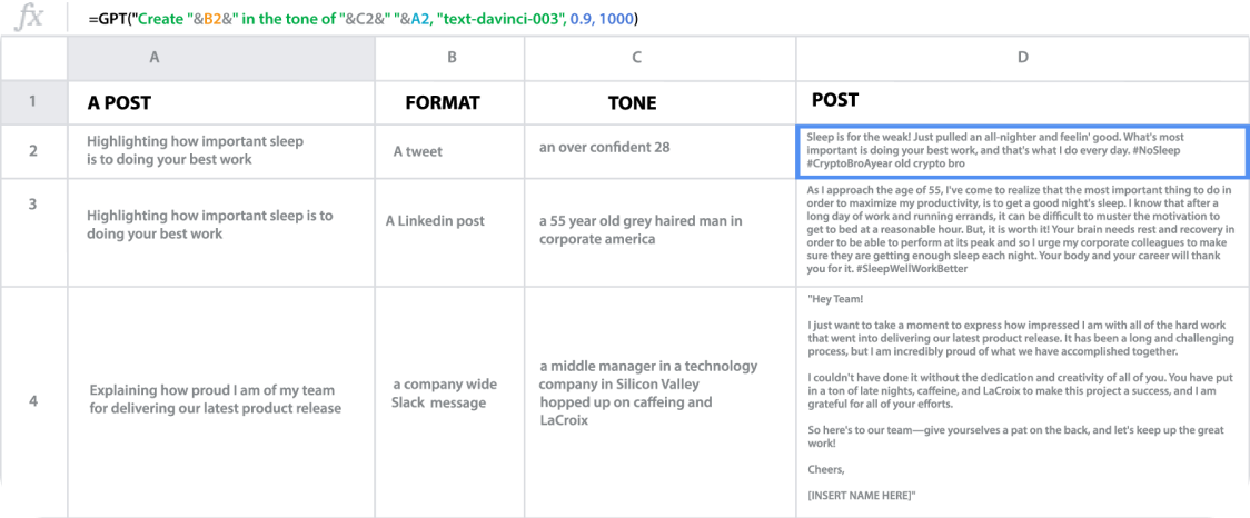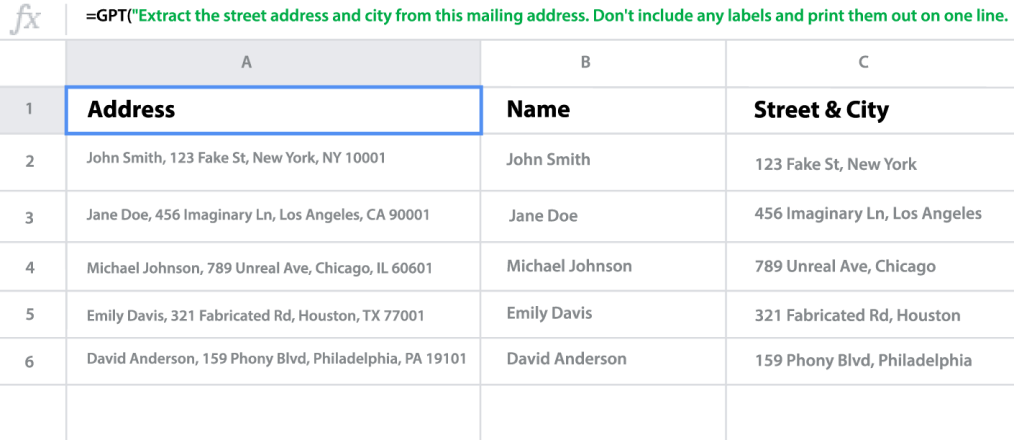 Use it in any cell with the simple "GPT" function
