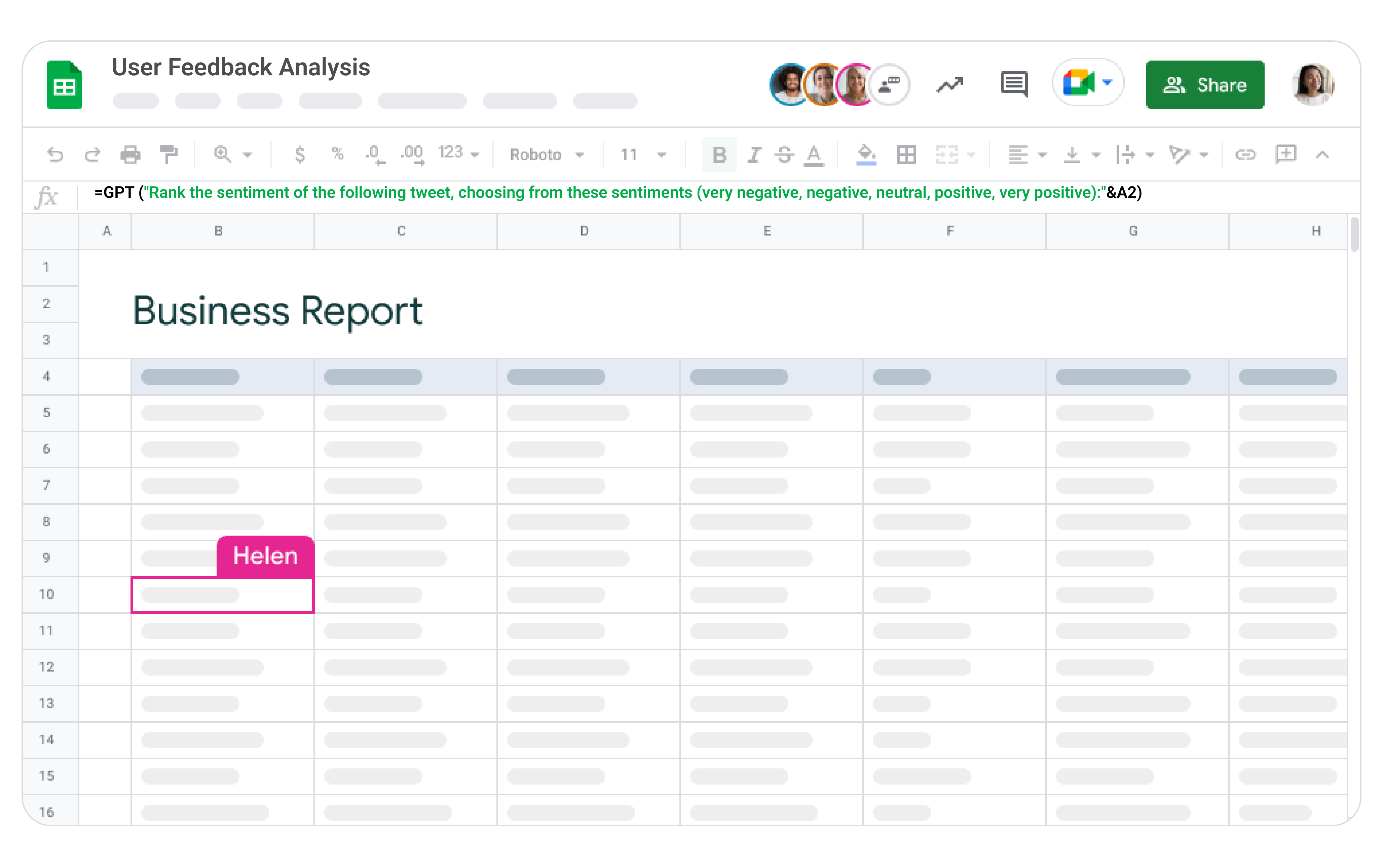 SheetGPT is the easiest way to integrate OpenAI's GPT natural language processing directly within your Google Sheets™.